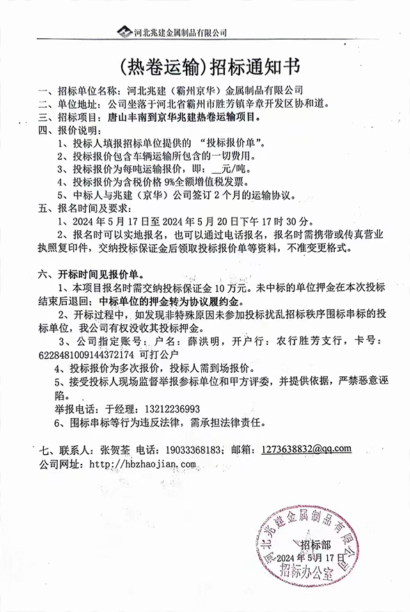 (熱卷運(yùn)輸)招標(biāo)報(bào)名通知書
