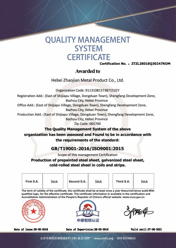 通過此次認(rèn)證,對進(jìn)一步提升公司質(zhì)量管理水平,夯實(shí)質(zhì)量管理基礎(chǔ),促進(jìn)質(zhì)量管理工作的規(guī)范化、標(biāo)準(zhǔn)化、制度化起到了積極作用。同時也標(biāo)志著我公司的產(chǎn)品獲得了進(jìn)入市場領(lǐng)域的綠色“通行證”,能夠持續(xù)穩(wěn)定地向客戶提供滿意、合格的產(chǎn)品,為進(jìn)一步提升客戶服務(wù)、提高市場競爭力、打造品牌提供了有力保障。