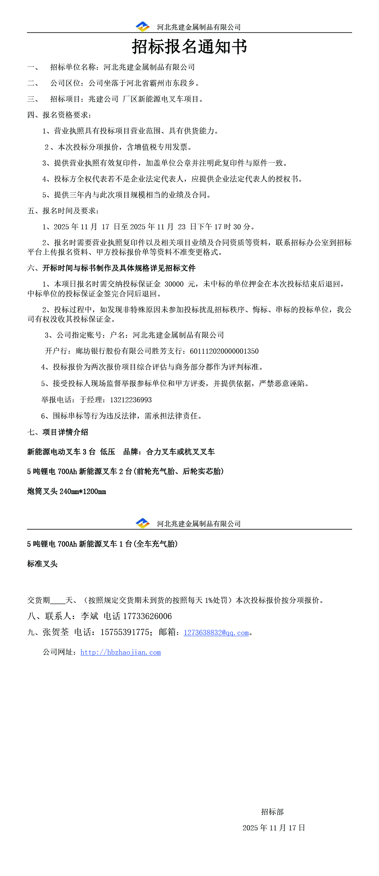 • 招標業(yè)主: 河北兆建金屬制品有限公司